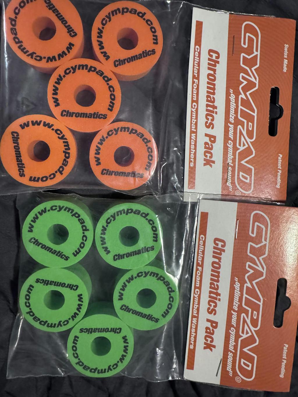 CYMPAD Chromatic cymbal washers come in a wide selection of color options that allow drummers to contrast, compliment and customize the look of their drum and cymbal sets. And, because they are made from CYMPAD’s exclusive high-density, cellular “Memory” foam, Chromatics also provide significant sound and performance enhancements when compared to old-fashioned felt washers. Uniform in size and shape, Chromatics are durable, colorful and recommended for the tops and bottoms of cymbals in all drumming styles and situations.